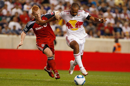The Red Bulls looked flat and sloppy in possession for most of the first half; Kenny Cooper and the returning Thierry Henry didn't impose themselves upon the game as they have so many times in the first half of this season. Toronto played fairly well, carved out several good chances, and may have been unlucky to score only once, when Koevermans took advantage of some (more) terrible defending by New York off a set piece.